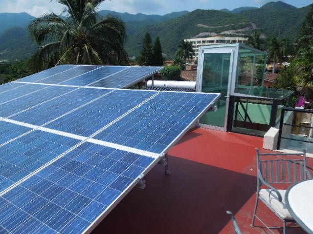 Thus it is hard to live in Mexico, where it is sunny pretty much all the time, and not have the thought at least cross your mind that if you could harness all the energy the blazing sun just gives us, especially in the winters when you use more electricity in the shorter and colder days (ironically, it is sunnier in the winter months) you could realize a huge savings in utility bills over time. We have never had enough hot water, and even with our old hot water heater cranked up to “max”, the water, especially at the far ends of the house, was never really hot enough. Friends and our architect all commented that with solar hot water we would have water that was so hot we might well have to install a gizmo that mixes some cold into it so we wouldn’t burn ourselves, and we both became intrigued with the idea. Indeed several friends who have done this have told us that they are delighted with the result; both because your electrical bills go down to virtually nothing and that you really can generate enough heat to have plenty of hot water without needing to be continually purchasing propane. And we have been consuming a LOT.